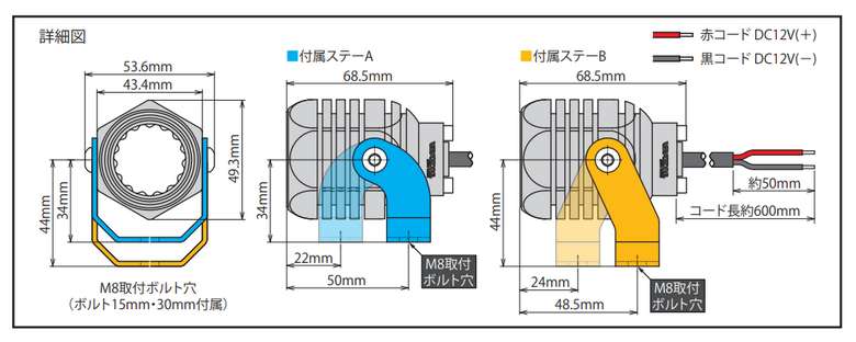 ※LEDフォグランプには汎用ステー(M8スクリュー及びナット)が付属していますが、車両に装着する場合は別途ステー等が必要になる場合がある。