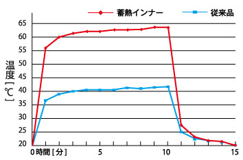 蓄熱保温の試験を行った結果、従来品の約1.5倍の蓄熱保温効果を発揮することも検証されました。