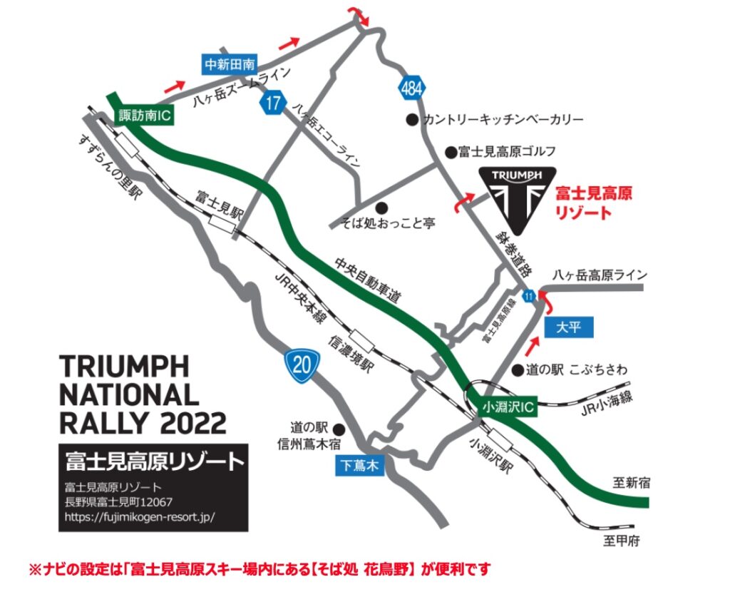 トライアンフモーターサイクルズジャパン株式会社(本社:東京都港区海岸 代表取締役社長:大貫陽介)は、今週末の 10 月 1 日(土)に開催が迫りました、「TRIUMPH NATIONAL RALLY 2022」のコンテンツを 3 回に分け発表しています。最終回の第 3 弾となる今回は、当日のタイムスケジュールやマップ、出展ブース、現地の気温などをお伝えします。