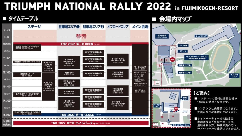 「TRIUMPH NATIONAL RALLY 2022」タイムスケジュール発表