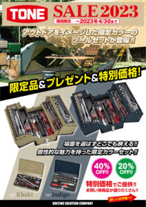 工具メーカーであるTONE株式会社は、「TONE SALE 2023」の開催と、河内長野市主催オープンカンパニーイベント「ワークワクワク河内長野」への参加を発表した。TONE SALE 2023は、「カーキ」と「インディゴ」の限定色ツールセットの購入や、定番のツールセット・ストレージ(収納具)がお得に購入できるイベントである。2022年12月1日から2023年4月30日まで開催予定だ。ワークワクワク河内長野では、一般非公開の本社ショールームをイベント限定で公開し、作業工具や世界シェアトップの電動工具など、4000点を超える製品を展示する。また、体験プログラムを通して実際に触れることで、ボルト締付の世界を学ぶことができるイベントとなっている。開催期間は、2022年11月22日から24日まで。ぜひこの機会に、気になっていた工具をお得にゲットしよう。