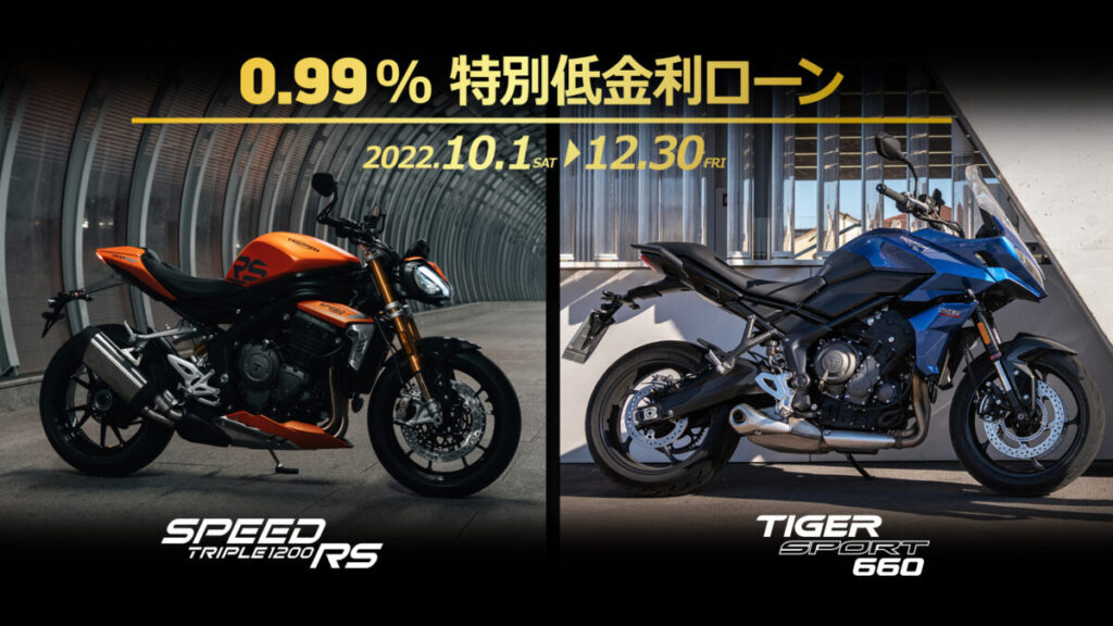 Speed Triple RS、Tiger Sport 660 に 0.99% 特別低金利ローンが登場!