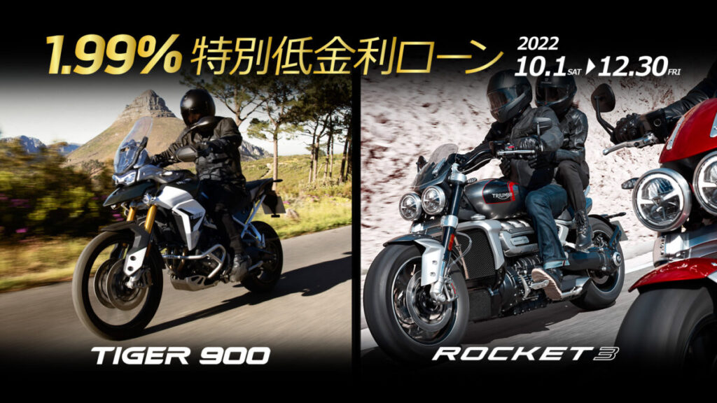 Tiger 900 シリーズ、Rocket 3 シリーズに 1.99%特別低金利ローンが登場!