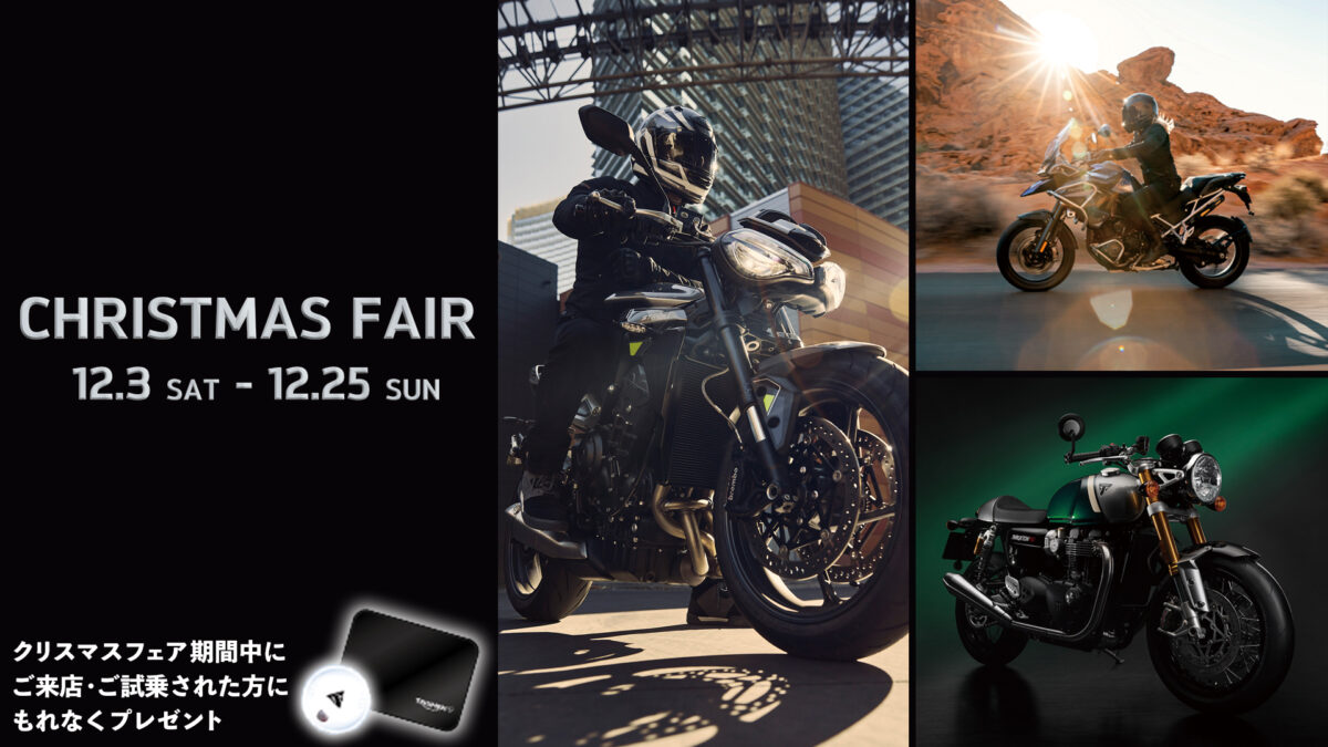 トライアンフモーターサイクルズジャパン株式会社(本社:東京都港区海岸 代表取締役社長:大貫陽介)は今週 末の 12 月 3 日より、120 周年を締めくくる 2022 年最後のフェアとなります「CHRISTMAS FAIR」を開催すること をお伝えします。