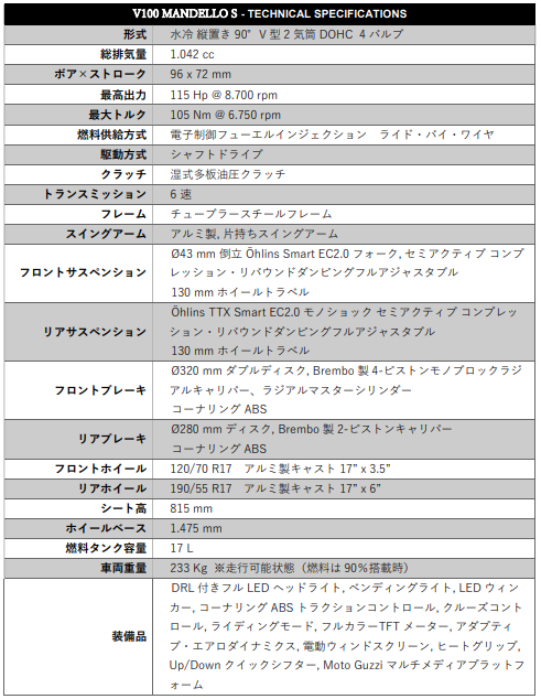 ■ V100 Mandello S / V100 Mandello 商品概要