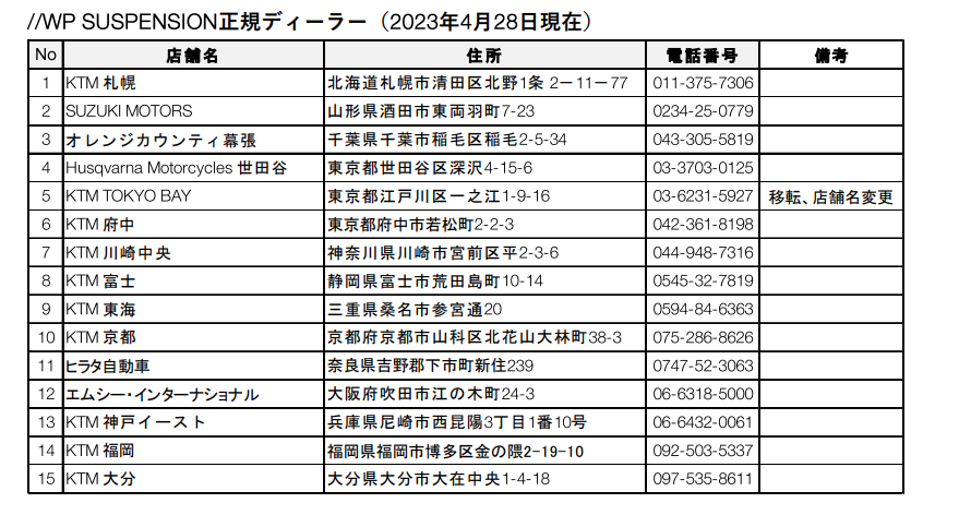 WP SUSPENSIONはパフォーマンスの高いサスペンションを装着するだけでなく、ライダーの好みやスキルに応じたセッティングを重視しています。今後ともより多くのお客様にWP SUSPENSIONの素晴らしいパフォーマンスをご提供できるよう正規ディーラーネットワークの拡充に取り組んで参ります。