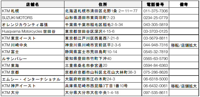WP SUSPENSION正規ディーラー、 KTM神戸イースト、KTM川崎中央が移転