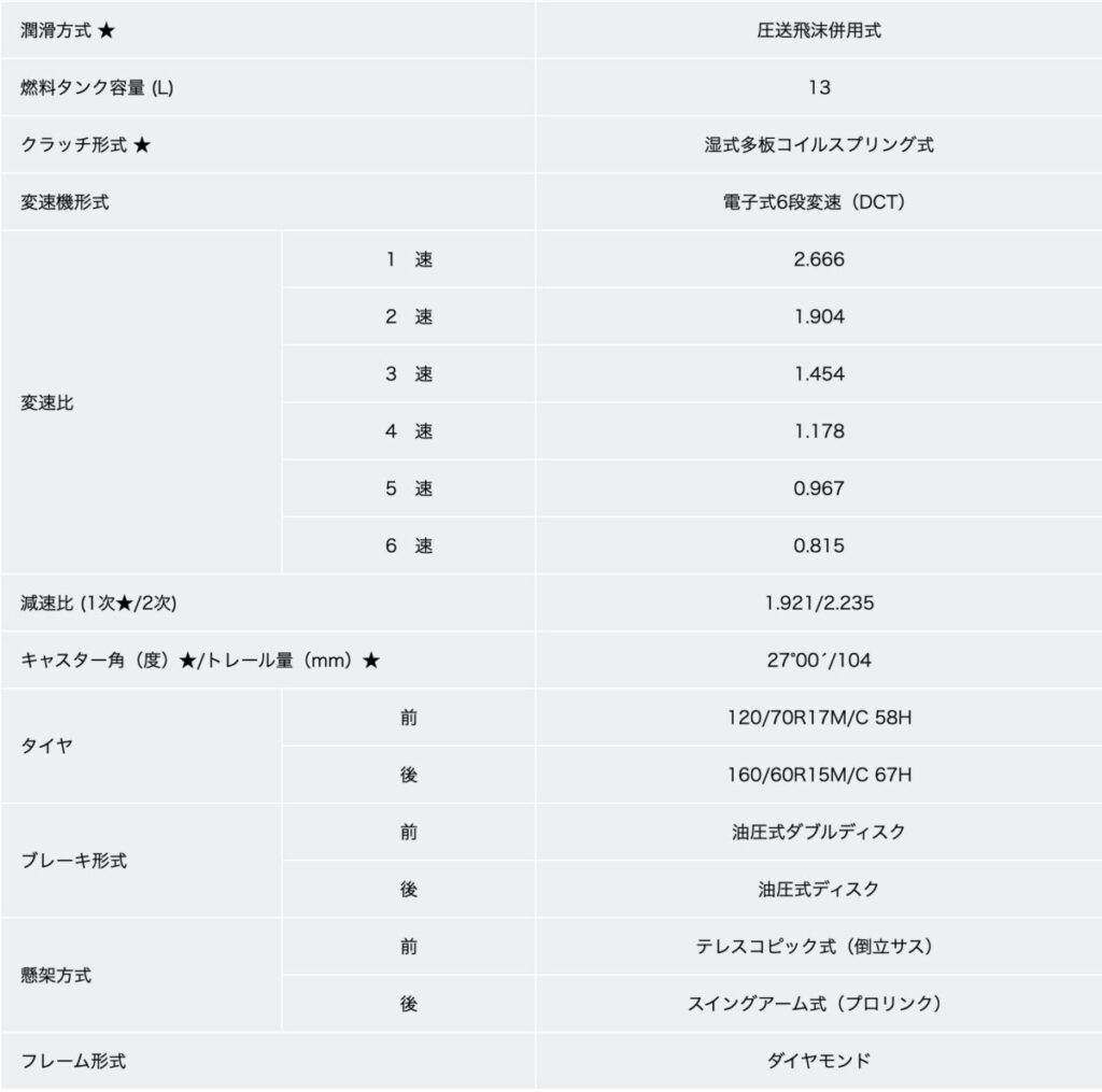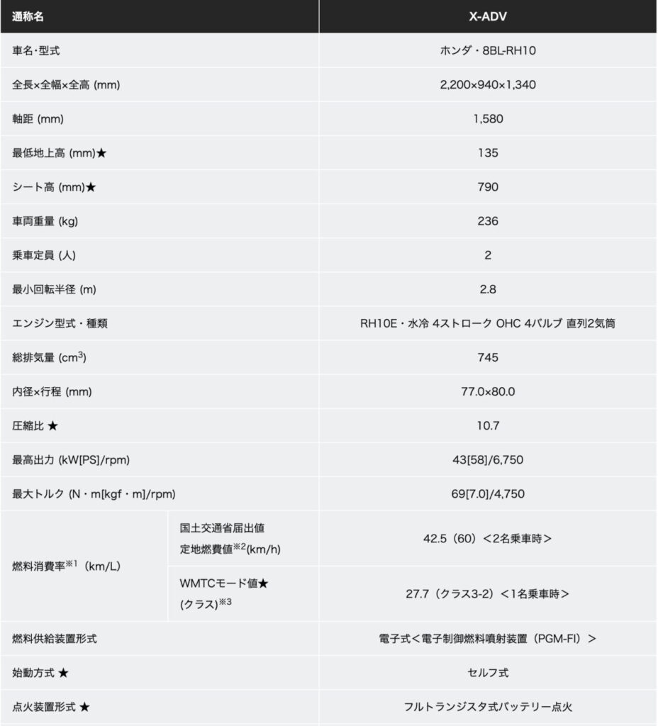 ■道路運送車両法による型式指定申請書数値(★の項目はHonda公表諸元) ■製造事業者/本田技研工業株式会社