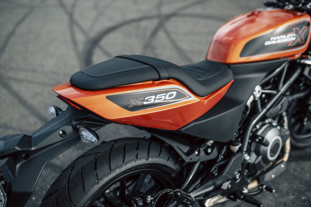一方「X500」は、クラシックなスポーツスターのスタイルに近いボバースタイルのリアフェンダーを採用しています。サドルには快適性を追求した幅広で厚みのあるクッションも備え、コントラストを効かせたステッチと座面のテクスチャー部分も相まって、高級感を演出しています。スロットルを回せば太く重厚なエギゾーストがライダーの体中を巡る、文字通り新世代のハーレーダビッドソンです。