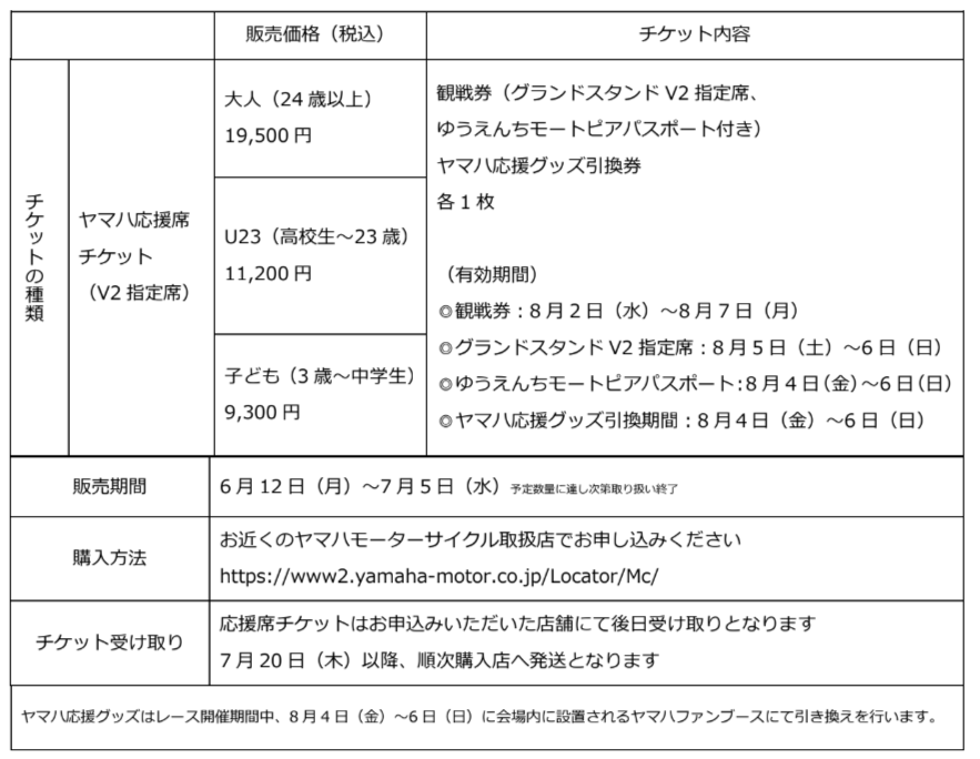 では、ヤマハ車で出走する全チームに熱い声援を送るヤマハ応援席を設け、ヤマハ応援席チケットを