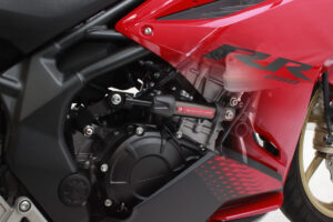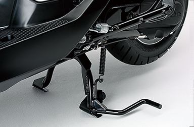 センタースタンドとハンドルスタンディングの配置、形状、サイズの最適設計により、積載時でも容易なセンタースタンド操作を実現しています。