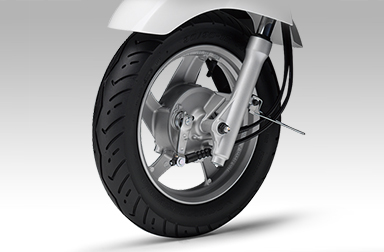 前後130mm径のドラムブレーキと軽量なアルミ製キャストホイールは、パワフルなエンジンと相まって優れた制動力と走行性を実現しています。