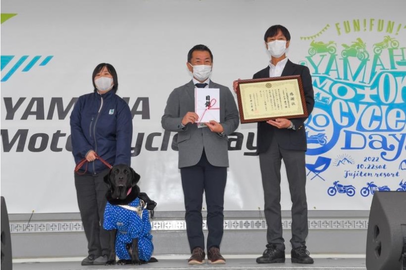 ヤマハ発動機株式会社、及びヤマハ発動機販売株式会社は、公益財団法人日本盲導犬協会に盲導犬の育成資金を贈る『YAMAHA NICE RIDE 募金』の 2021 年度分の集計を完了し、10 月 22 日(土)、 YAMAHA Motorcycle Day 2022 の会場(ふじてんリゾート)にて募金贈呈式を行いました。