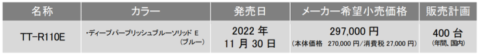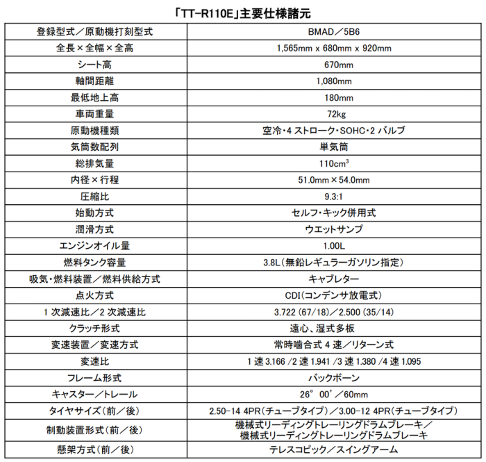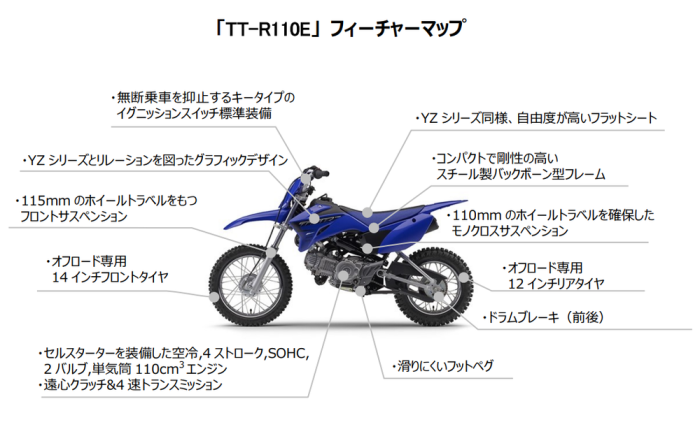 オフ・ファンライディングモデル「TT-R110E」発売