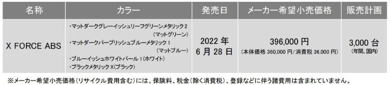 軽二輪スクーター「X FORCE ABS」新発売