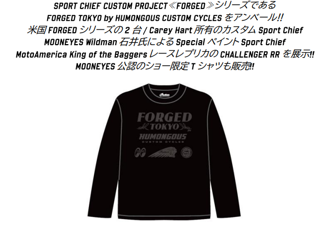 そして今回のインディアンブースでは MOONEYES 公認のショー限定ロングスリーブ T シャツを販売します。