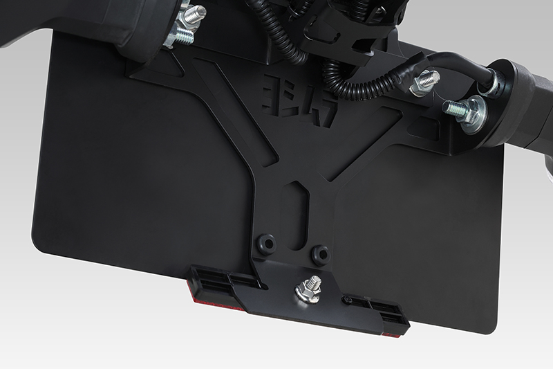 走行時における転倒時にシャーシ損傷のリスクを軽減するレーシングスライダーKIT「PRO SHIELD」は38,500円。小石などによるラジエターへのダメージを最小限に抑えるラジエターコアプロテクターは21,450円。カプラーオンタイプのLEDテールランプもセットになったスタイリッシュなフェンダーレスKITは33,000円(いずれも税込)。その他、専用のカスタムパーツが多数ラインナップしている。