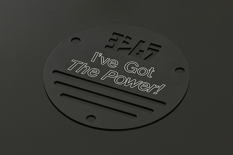 同製品は、転倒時のエンジンの損傷リスクを軽減してくれるカバーパーツとなる。ブラックアルマイト加工されたアルミプレートは、レーザーマーキング加工で「I’ve Got The Power!」のレタリングが施され、ドレスアップにもピッタリだ。価格は16,500円(税込)。