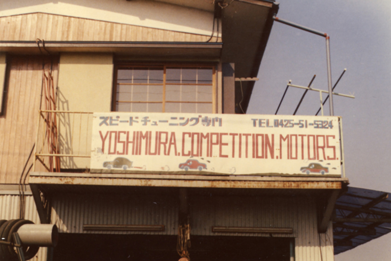 福岡から東京へ進出と同時に社名も「吉村モータース」から「ヨシムラコンペティションモータース」に改名。写真は当時の工場の看板。
