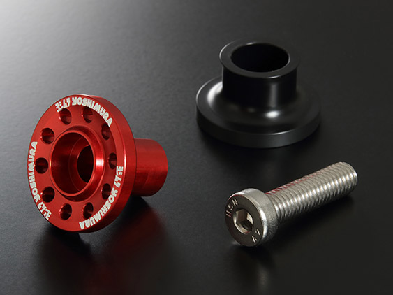 - アルミ削り出しと樹脂製のカラーを組み合わせることで、リアスタンド装着時に内側の樹脂カラーが回転。スタンドのスムーズな装着と、接触面の傷付きを抑えられます。