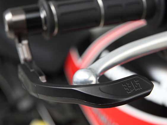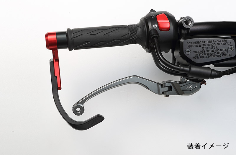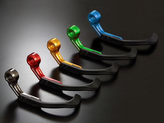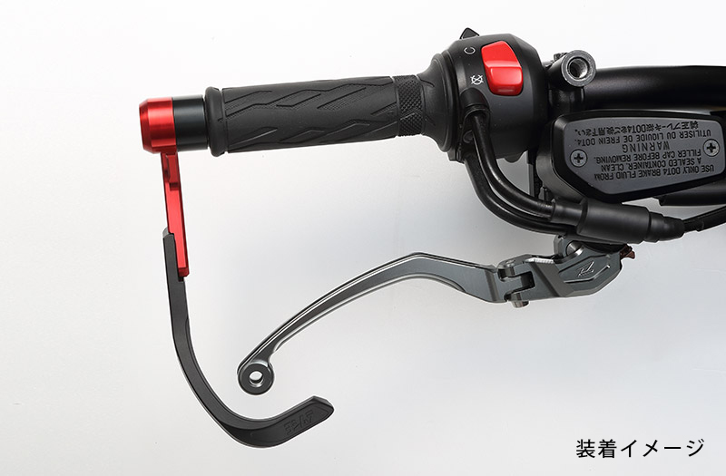 昨今のレースレギュレーションでも装着が義務付けられているブレーキレバーガードは、他車との接触等によるブレーキの誤作動を効果的に防ぐことはもちろん、手軽にドレスアップが可能。ハンドルバー内径 14〜15.5mmに対応したφ14用と、16〜18.7mmに対応したφ16用がラインナップされ、幅広い車種への取り付けが可能だ。