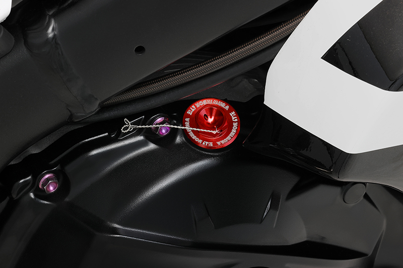 リアスタンドブラケットと、リアスタンドブラケットHigh Lineは、メンテナンスリアスタンドを簡単に装着することができる機能性パーツ。また、ヨシムラレーサーにも使用されているオイルフィラーキャップは、純正フィラーキャップからOリングを付け替えるだけで簡単に取り付けができ、ワイヤリングが可能となる。それぞれ4色のカラーバリエションで展開され、車体に合わせたコーディネートが可能だ。