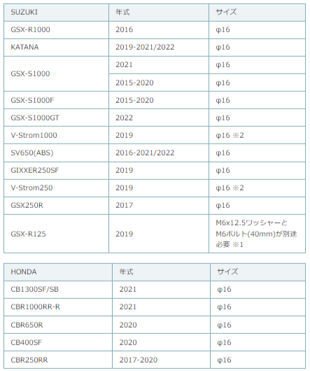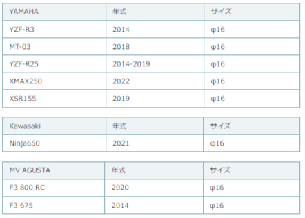 ・ハンドルバー内径 14〜15.5mmに対応したφ14用と、16〜18.7mmに対応したφ16用をラインナップ。