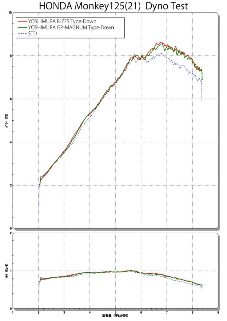 R-77Sサイクロンは、Monkey125の広域に渡るトルクフルな出力特性を更に向上させ、ストレス無い加速をもたらす。またサイレンサー容量により単気筒特有のサウンドをマイルドに、長時間乗っても疲れにくく心地良い音質にさせている。