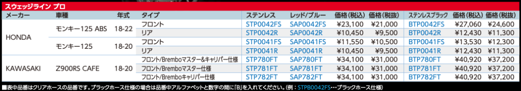 車種専用ブレーキホース「スウェッジラインプロ」に、HONDA モンキー125ABS 18-22/モンキー125 18-20、KAWASAKI Z900RS CAFE 18-20 ブレンボ仕様 ブレーキホースKITをラインナップ