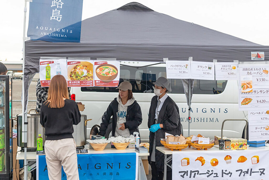 隣接する日帰り温泉施設・アクアイグニス淡路島は自慢のメニューを出張販売。ギャラリーに大人気。