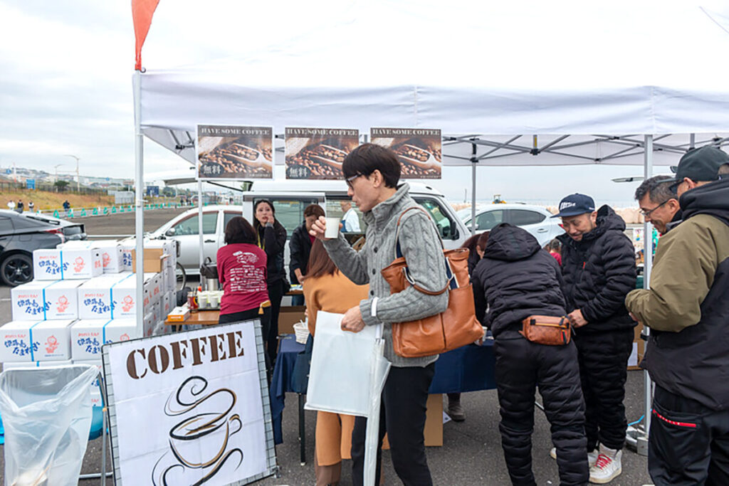 一方で、先着順限定でPMCが運営事務局テントでコーヒーをふるまったり、隣接する日帰り温泉施設のアクアイグニス淡路島(当日の来場者には入浴割引サービスも)を筆頭とした飲食ブースも多数設置されて、会場を1日楽しみたいギャラリーには至れり尽くせり。