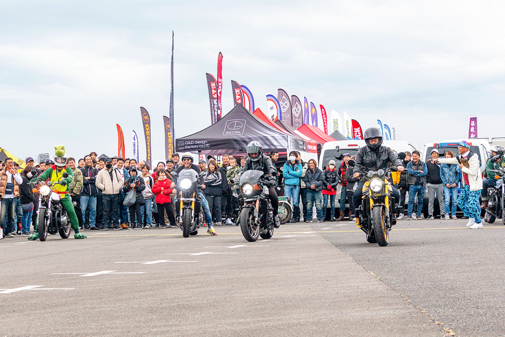 Z祭の見どころは出展ブースにとどまらない。メインステージ前に設けられたイベントスペースでは、どれだけ愛車で遅く走れるかを競う「遅-1 GP」や駐車場に停められたバイクからカッコいい1台をPMCとMCがそれぞれに決めて表彰する「カスタムコンテスト」、そしてお約束の「じゃんけん大会」に「愛車撮影会」と、来場者が楽しめるコンテンツが目白押し。イベントスペースは終日、笑顔であふれていた。