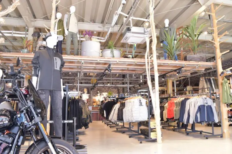 バイクメーカーやアウトドア企業とのコラボで、オフタイムでの着用をイメージできるダイナミックなビジュアルプレゼンテーションを行っている。また、店舗全体が、大型ショールームとなっており、法人オーダー・まとめ買いがスムーズにできるようになっている。