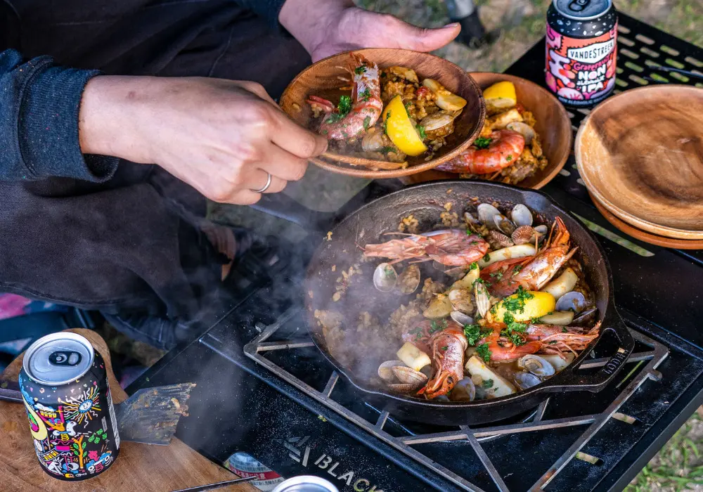 ・キャンプレシピの野菜たっぷりパエリアとローアルコールビールがたまらない!