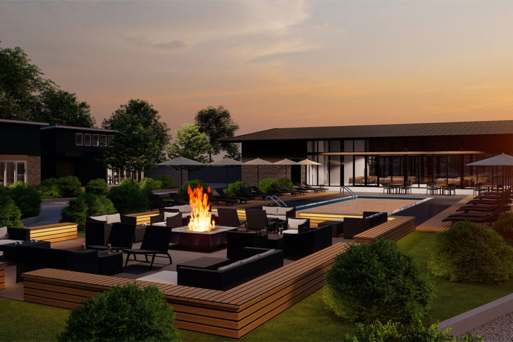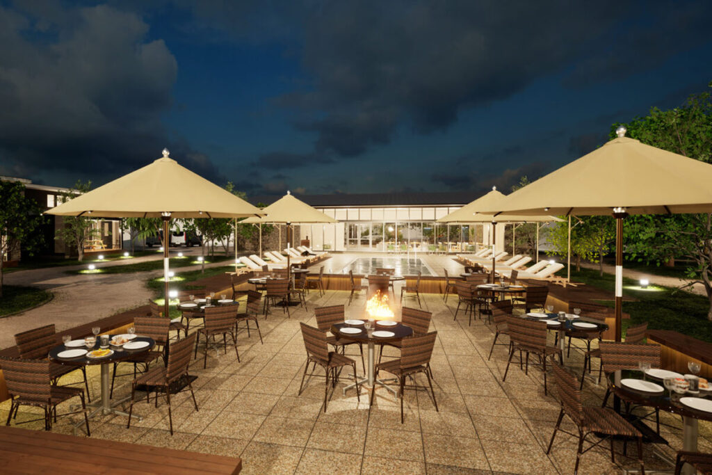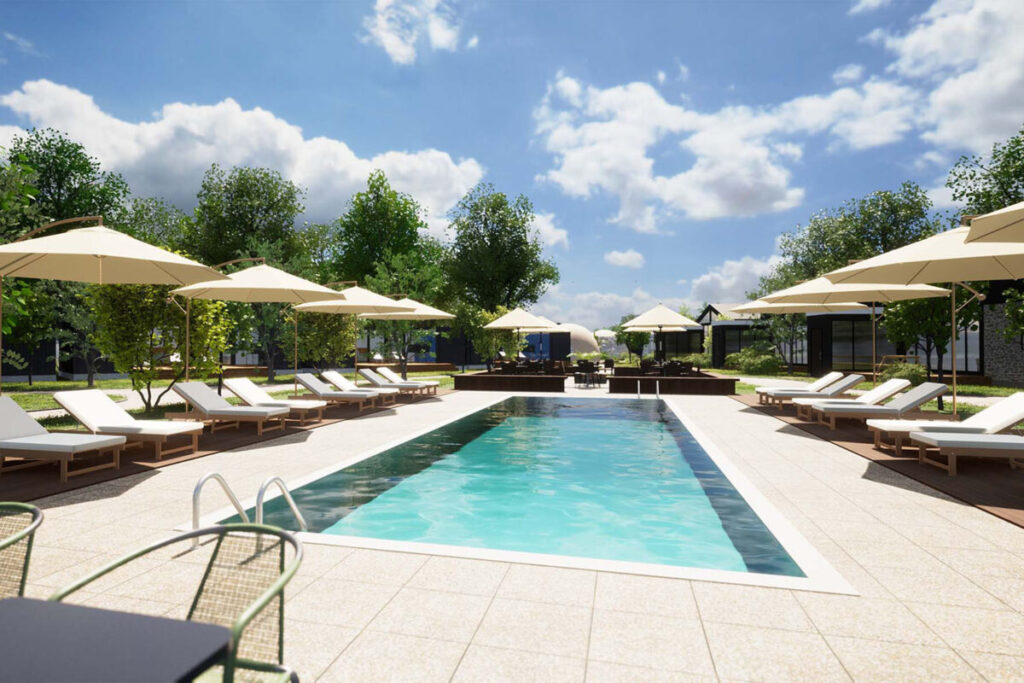 ご宿泊のお客様のみでご利用いただける専用プールを備えたアウトドアリビング。