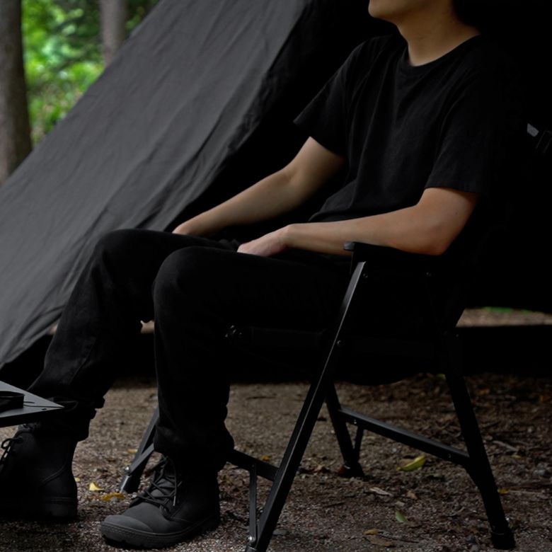 ブラック好きにはたまらない激渋なアウトドアチェアに仕上がっている。