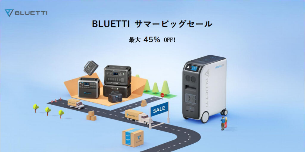 BLUETTI JAPAN株式会社は、2023年7月1日(土)から7月10日(月)まで開催される「サマービッグセール」において、大容量ポータブル電源が最大45%OFFとなる特別セールを実施する。