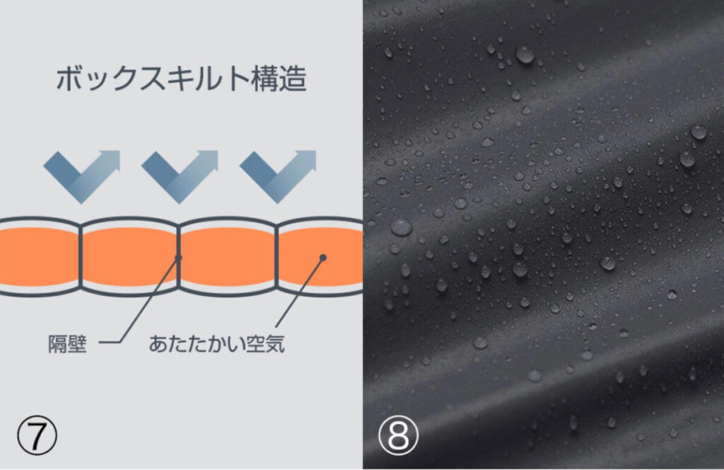 7.保温性の高いボックスキルト構造