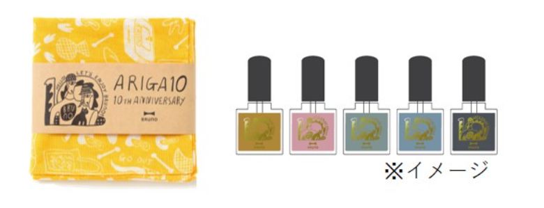 発売を記念して、10周年の記念イラストを全面にプリントしたオリジナルハンカチ、直営店舗限定で5色のホットプレートをイメージしたマニキュアをプレゼントする。