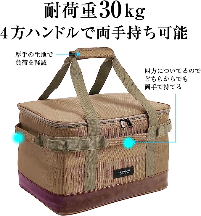 2.耐荷重30kg!安心のタフネス設計。たくさん詰め込んでも安心な「持ち運び方」のバリエーションも。