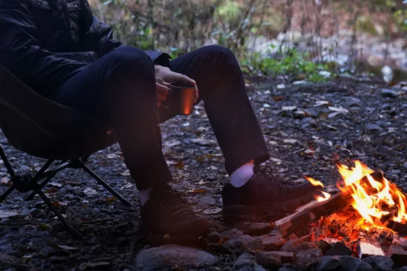 この難燃と撥水の2つの加工を施すことで焚き火でも雨や水辺でもキャンプを楽しむことができます。