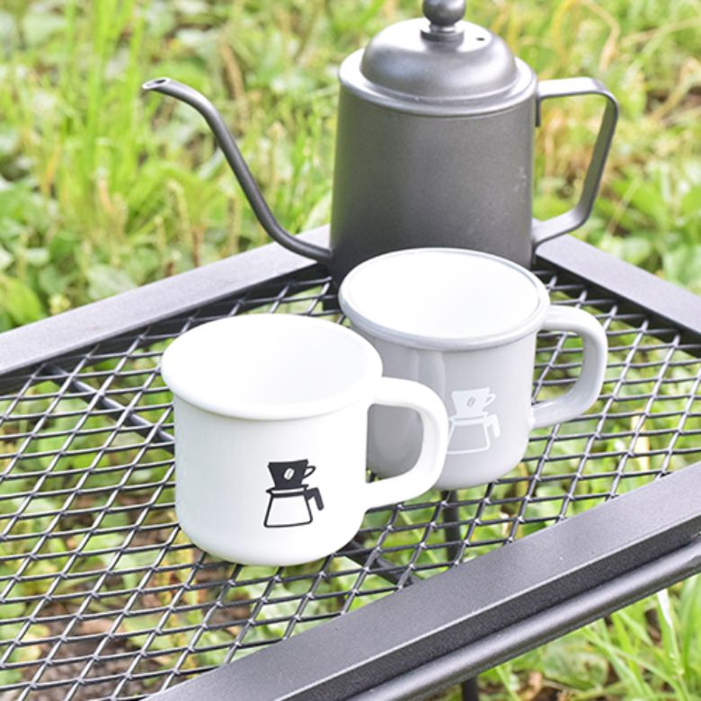 「ホーローコーヒーマグ」はその名の通り、素材に直火でも使えて耐久性にも定評のある、ほうろう用銅板が使われておりレトロ雰囲気漂うその様相は、キャンプ場で取り出しても映えること間違いなし。そしてもう一方の「コーヒーマグ170ml」は軽量かつ衝撃にも強いトライタン製で、底部が厚めで倒れにくく工夫が凝らされている。
