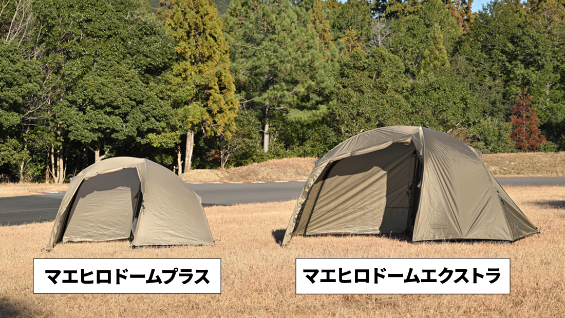 ツーリングテントの「マエヒロドーム」がオートキャンプ対応へ進化!かがまず動ける開放感を実現した新モデル誕生