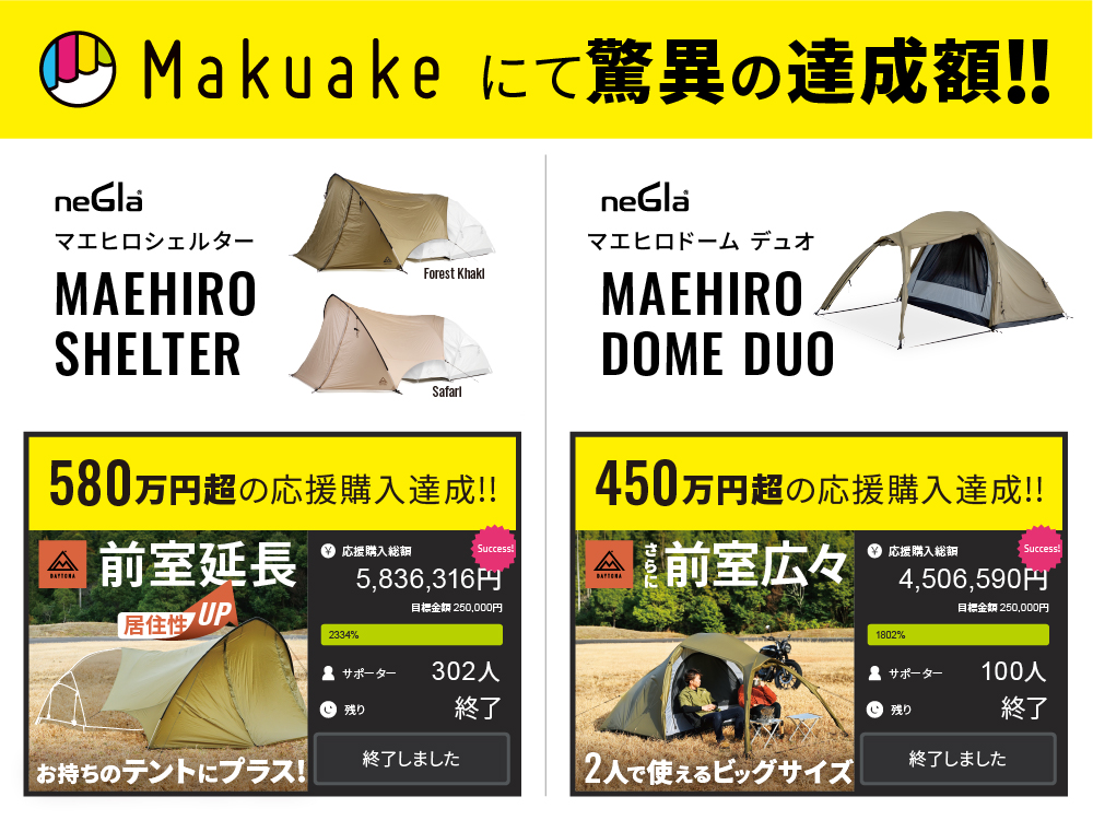 昨年にMakuakeにてクラウドファンディングを開始し、5日間で完売させた開発担当者が今回も新作テントで開始。合計で1000万円以上が集まった2つの新商品が一般販売を開始します。
