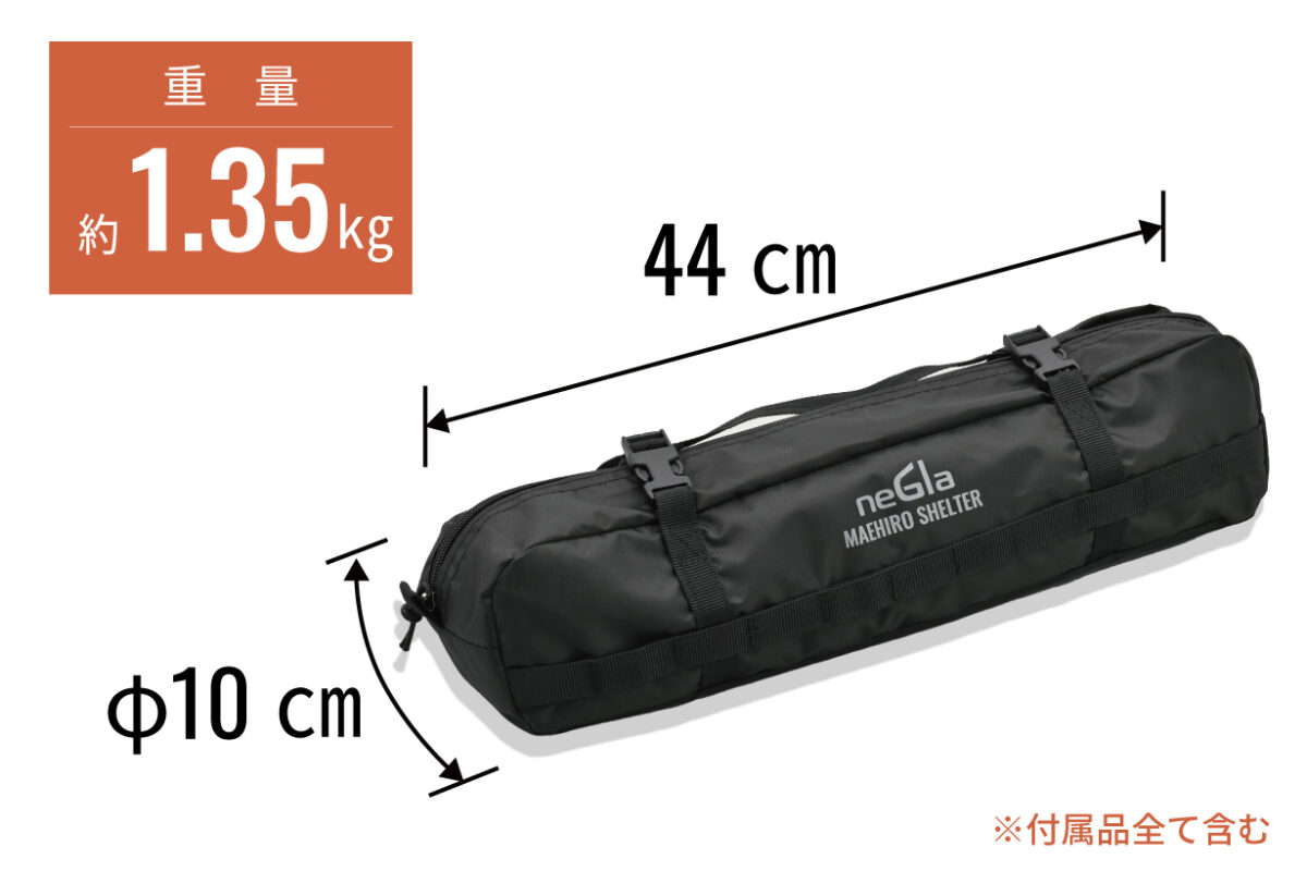 収納寸法:44×φ10㎝ 重量1.3㎏と軽量コンパクト。荷物を少なくしたいツーリングキャンパーにおすすめ。