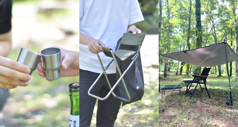マルチに活躍するシートやコンパクトに収納できるチェアなどアウトドアの必需品の他に、家ではもちろん野外でもお酒を楽しめるアイテムも仲間入り。