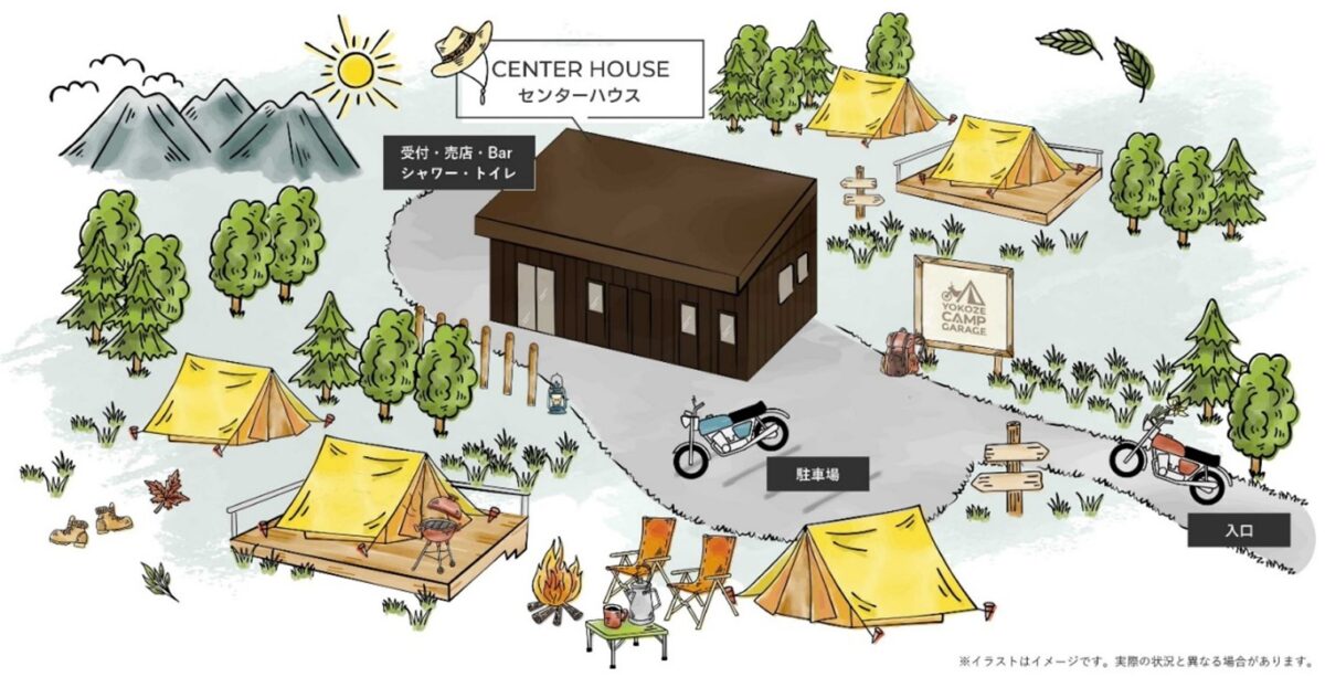 株式会社エクサブレインは、埼玉県横瀬町にソロ・バイクキャンパー向けキャンプ場「YOKOZE CAMP GARAGE(横瀬キャンプガレージ)」を2025年4月に正式オープンした。