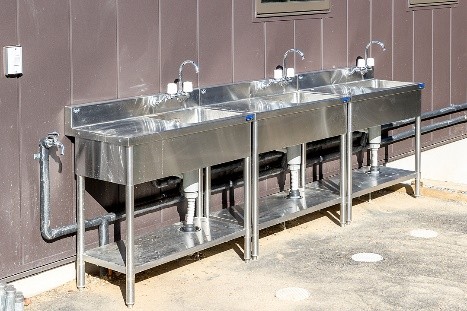 温水が利用できる炊事場。上水道ですので、飲用や調理にご使用いただけます。
