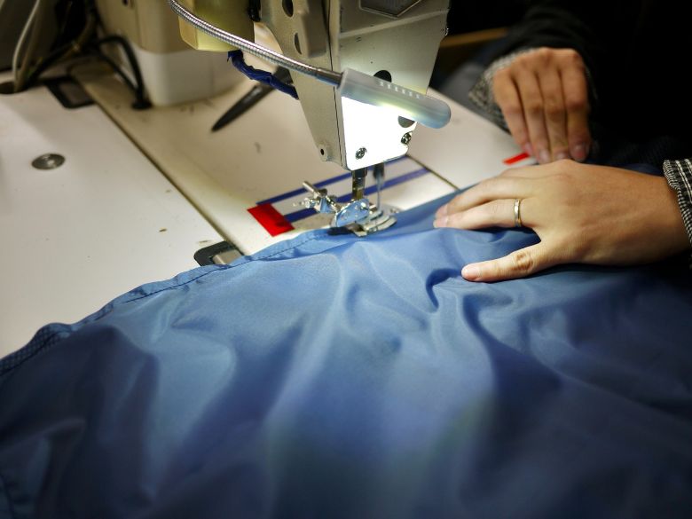 生地には環境への負荷を低減する再生ポリエステルを採用し、型抜きから縫製まで生産工程のすべてを国内で実施。この特殊な生地の耐久性は、国土交通省がライフジャケットに求める基準の4倍以上。強力な紫外線や水に長時間さらされても、やはり同基準の2倍以上の強度を保る。プロダクトの製作背景にまで「安心」を意識した配慮を重ねている。
