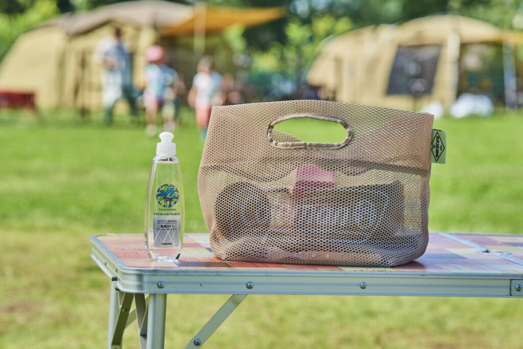 コールマン商品(バッグ、アパレル、ライセンス商品を除く)10,000円以上のご購入で洗い物メッシュバッグとサラヤ株式会社のヤシノミ洗剤セットを先着9000名様プレゼント。メッシュバッグは、丸洗い可能で洗い場に行く際に一度多くの食器を運ぶことができ、スポンジや洗剤の収納スペースを備えています。